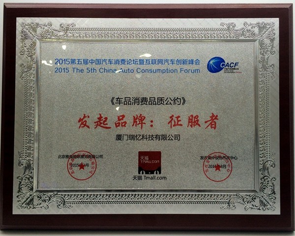 3月9日,“2015年第五届中国汽车消费论坛暨互联网汽车创新峰会”在中国国际展览中心(新馆) W201会议室隆重举行,汽车后市场30家龙头企业在发改委中国设备管理协会汽车用品与改装技术中心、阿里巴巴旗下天猫平台、展会主办方雅森集团联合下,发起《汽车用品品质公约》,征服者作为行业龙头品牌之一,出席并参与发起该公约。